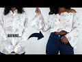 DIY Off The Shoulder Bell Sleeve Top | Men's Shirt Refashion